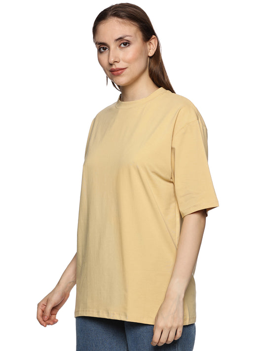 Women's Beige Oversized Cotton T-Shirt