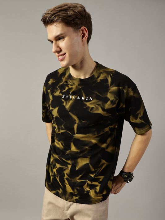 BLACK CRUSHED YELLOW TEXTURE OVERSIZED T-SHIRT