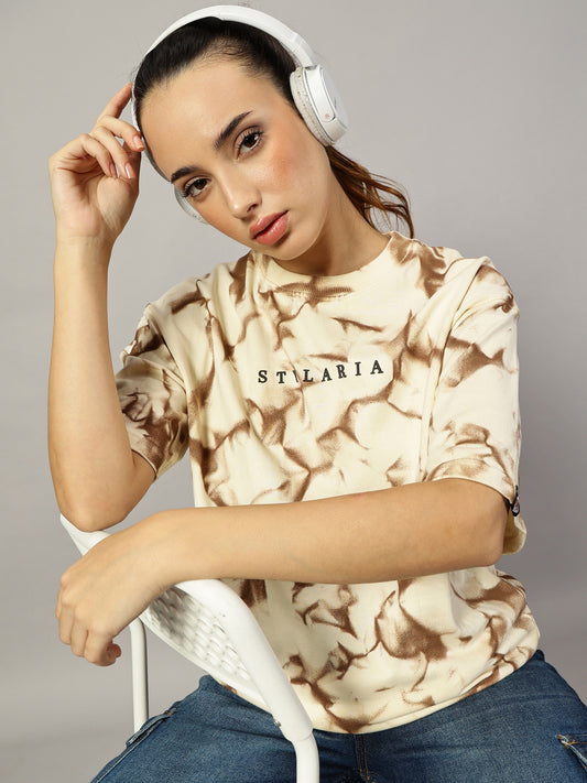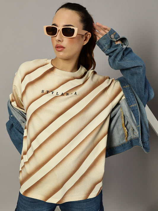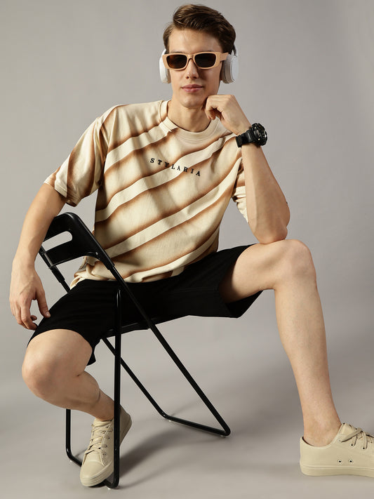 BEIGE OVERSIZED LINE TEXTURE T-SHIRT