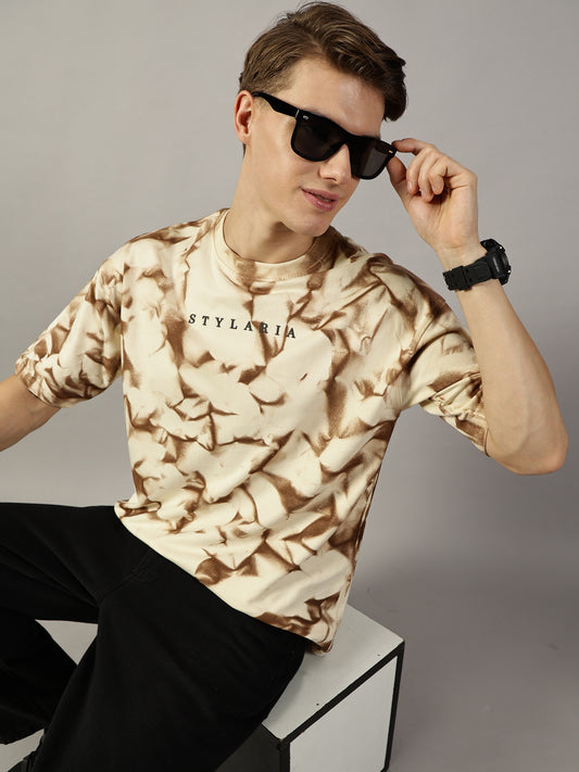 BEIGE OVERSIZED CRUSHED TEXTURE T-SHIRT