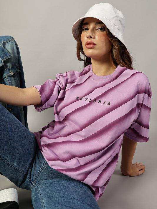 LAVENDER OVERSIZED LINE TEXTURE T-SHIRT
