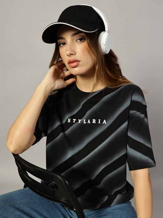 BLACK OVERSIZED LINE TEXTURE T-SHIRT