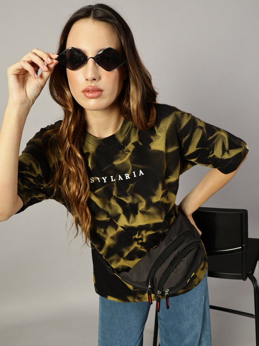 BLACK CRUSHED TEXTURE YELLOW OVERSIZED T-SHIRT