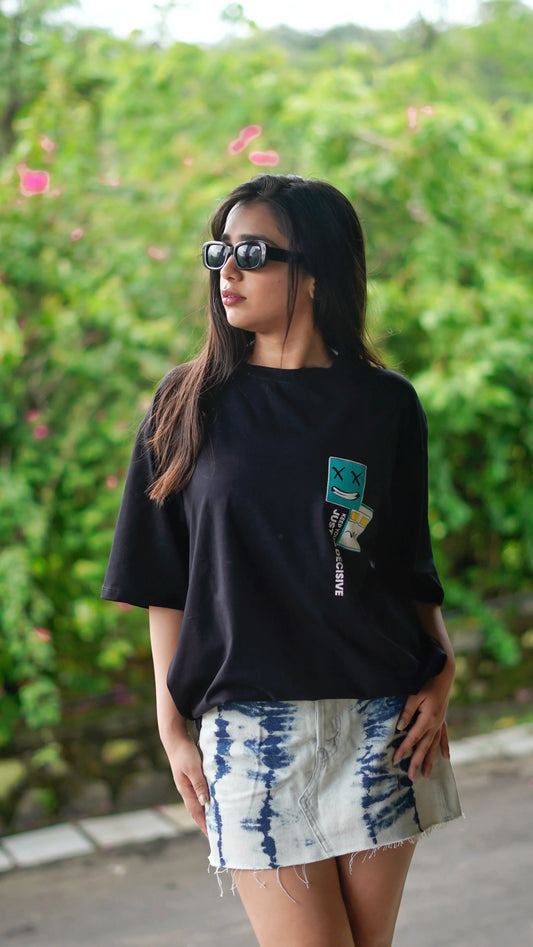 BLACK OVERSIZED GRAPHIC PRINT T-SHIRT